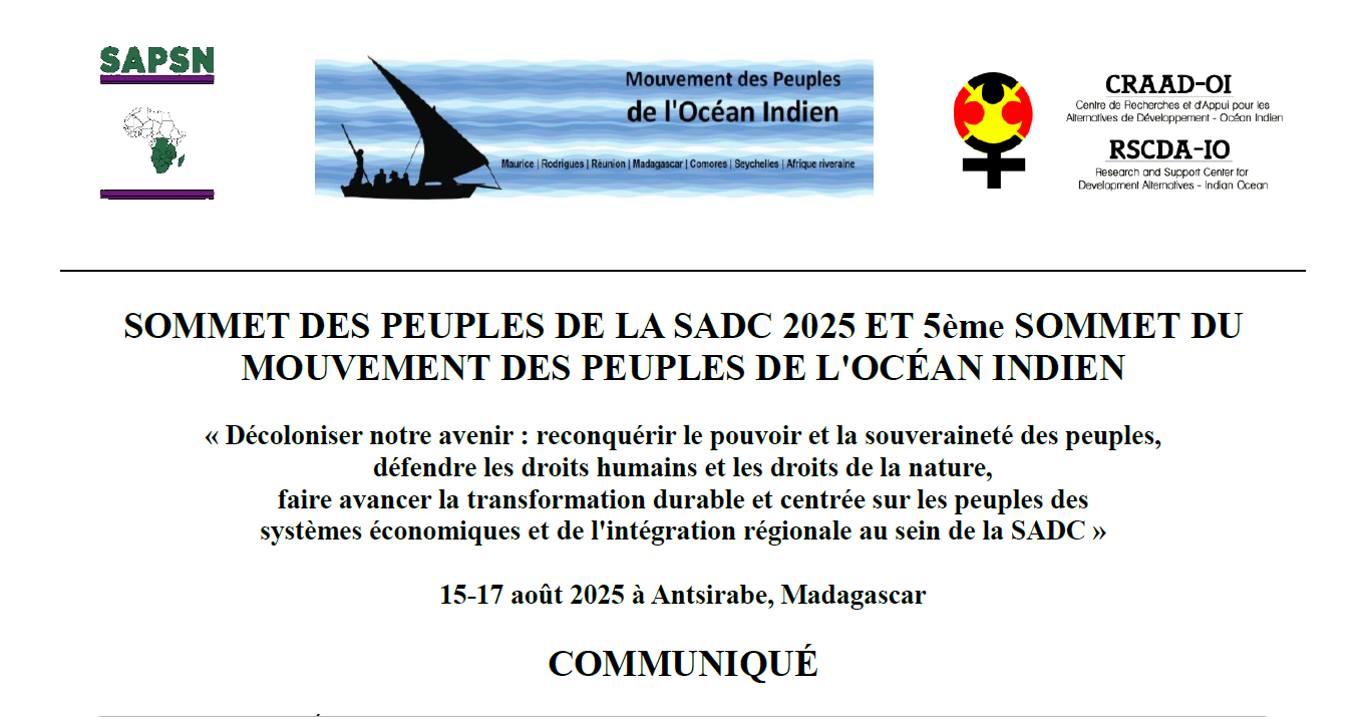 Le Sommet des Peuples de la Région SADC et du Mouvement des Peuples de l'Océan Indien 2025 à Antsirabe.