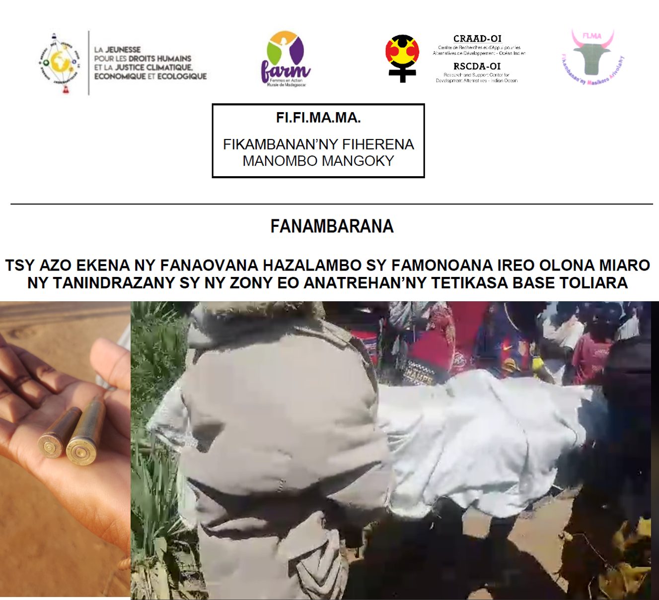 TSY AZO EKENA NY FANAOVANA HAZALAMBO SY FAMONOANA IREO OLONA MIARO NY TANINDRAZANY SY NY ZONY EO ANATREHAN’NY TETIKASA BASE TOLIARA