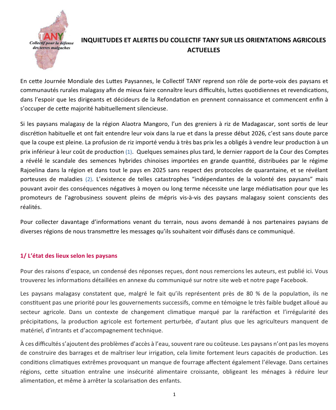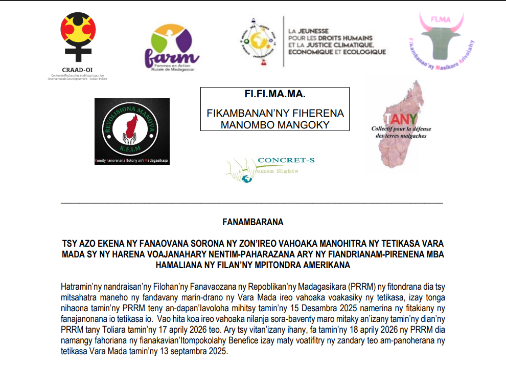 REVENDICATION DE TRANSPARENCE AUX DIRIGEANTS DE LA REFONDATION DE LA RÉPUBLIQUE DE MADAGASCAR SUR DES PROBLÉMATIQUES CRUCIAUX ACTUELS